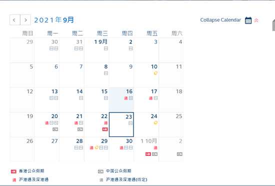 南向交易今日(9月16日)關(guān)閉,明日(9月17日)起北向交易和南向交易全部關(guān)閉,9月23日恢復(fù)正常交易。