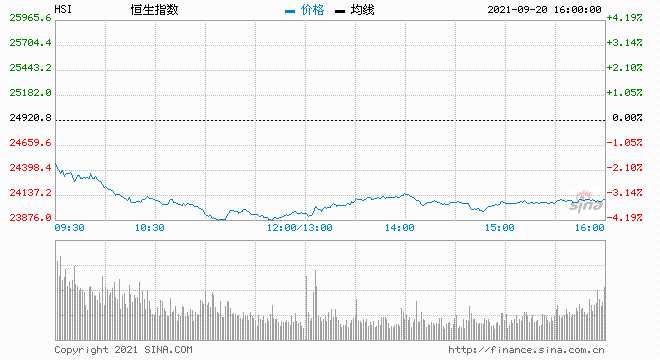 收評:港股恒指跌3.30%險守24000點 銀行、地產(chǎn)板塊走低