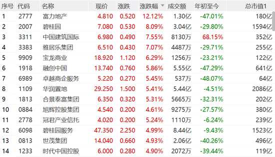 內(nèi)房股普遍走高:富力地產(chǎn)漲超12%碧桂園漲超8%融創(chuàng)漲近6%