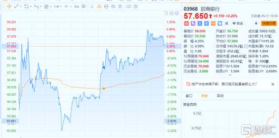 昨日港股大崩盤,帶綠一片銀行股。向來以穩(wěn)健增長著稱的招商銀行領跌一眾銀行股,跌幅逾14%。今日,招商銀行繼續(xù)低開一度跌超3%,午后跟隨大市震蕩回升,截至收盤,漲0.26%報57.65港元/股。