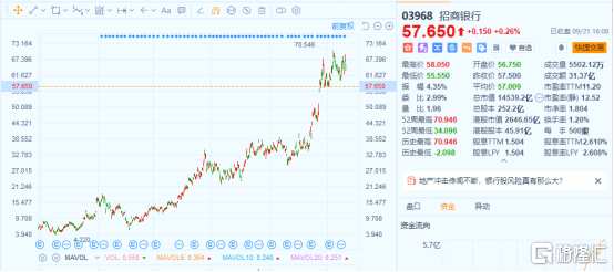 作為在港上市的內(nèi)地銀行明星股,招商銀行自上市后股價便一路上揚,過去一年多在港股市場更是成績斐然。自去年3月低位至今年9月初,招商銀行累計漲幅超過116%。