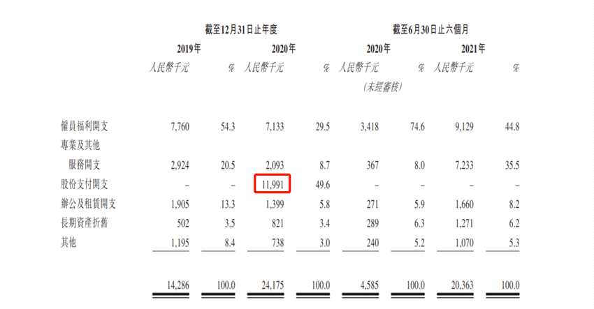 招股書顯示,差旅開支主要包括銷售及營銷雇員在營銷活動中產(chǎn)生的差旅及交通開支。2019年、2020年、2021年上半年分別為256萬、250萬、341萬,顯著上升。