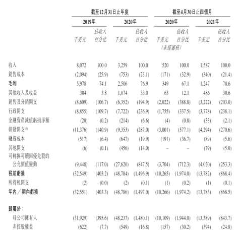 根據(jù)招股書,堃博醫(yī)療2019、2020年營收分別為807萬美元、326萬美元;虧損分別為3255萬美元、4879萬美元;年內經(jīng)調整凈虧損分別為1751萬美元、1906萬美元。