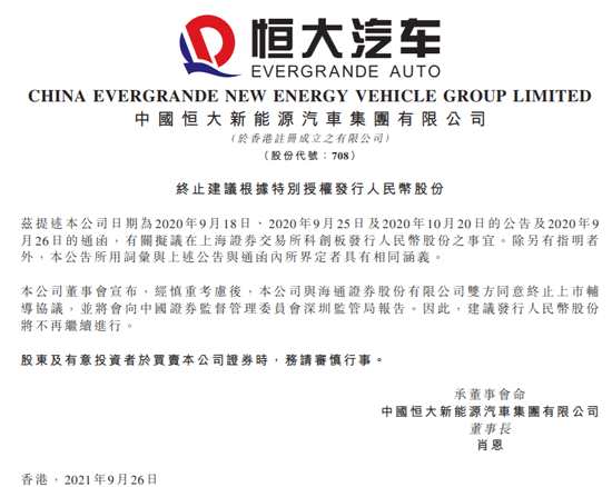 摘要: 恒大汽車發(fā)布公告,茲提述本公司日期為2020年9月18日、2020年9月25日及2020年10月20日的公告及2020年9月26日的通函,有關(guān)擬議在上海證券交易所科創(chuàng)板發(fā)行人民幣股份之事宜。