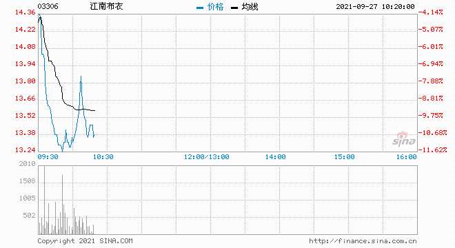 9月27日消息,江南布衣股價(jià)跌超11%,報(bào)13.3港元,此前就兒童服裝設(shè)計(jì)不當(dāng)致歉。