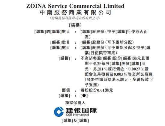 中南集團(tuán)子公司中南服務(wù)商業(yè)有限公司在港交所披露招股說明書,擬在主板市場(chǎng)上市,建銀國(guó)際為獨(dú)家保薦人。