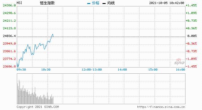 摘要: 10月5日消息,港股低開高走,恒生指數(shù)轉(zhuǎn)漲,恒生科技指數(shù)跌幅收窄至0.53%。恒指成分股中,中國石油股份漲超5%,中國石油化工股份、李寧漲近3%,藥明生物漲超2%。