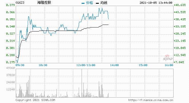 10月5日消息,海隆控股暴漲45.10%,報0.37港元,最新市值6.28億港元。