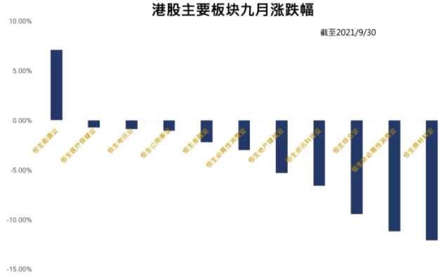 縱觀港股主要板塊九月的表現(xiàn),除了能源類,其余基本全部下跌,原材料、非必需性消費(fèi)、資訊科技、地產(chǎn)建筑等的跌幅居前。