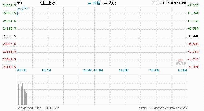 10月7日消息,港股恒指漲幅擴(kuò)大至2.2%,國(guó)企指數(shù)漲2.56%,紅籌指數(shù)漲1.2%。