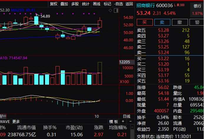 銀行板塊中,平安銀行(000001,股吧)、招商銀行大漲,兩只股票盤中漲幅均一度在6%左右。