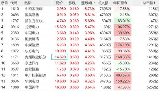 電力煤炭股集體走高:龍?jiān)措娏q超5%中國(guó)電力漲近4%