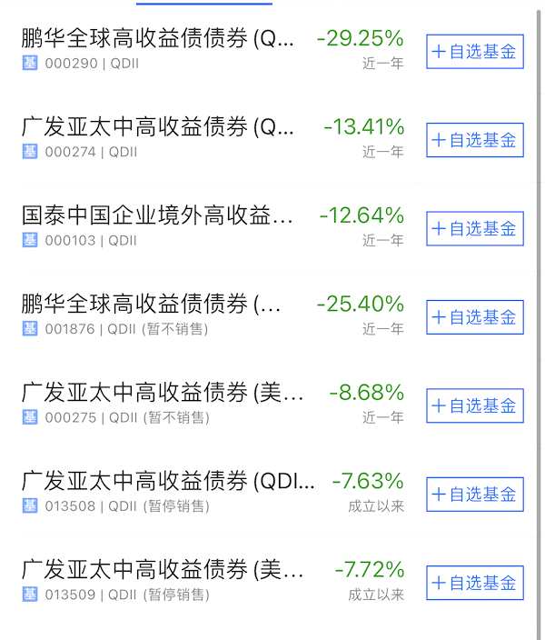 此外,另一款QDII基金廣發(fā)亞太中高收益?zhèn)?000274)近一年回撤超13.41%。據(jù)記者了解,今年以來,境外高收益?zhèn)鹌骄爻贩缺平?0%,差一點(diǎn)的則下跌20%,但接近30%跌幅的仍然較少。
