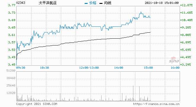 10月18日消息,太平洋航運(yùn)持續(xù)走高,現(xiàn)漲11.08%,報(bào)3.71港元,最新市值178.55億港元。