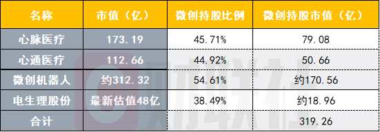 如上圖統(tǒng)計,微創(chuàng)醫(yī)療目前持有的這些上市或擬上市子公司總市值超319億元,而它本身港股市值為597億人民幣,倘若未來電生理股份成功登陸科創(chuàng)板,微創(chuàng)醫(yī)療光持有的上市公司總值可能將要接近或大于其自身市值。