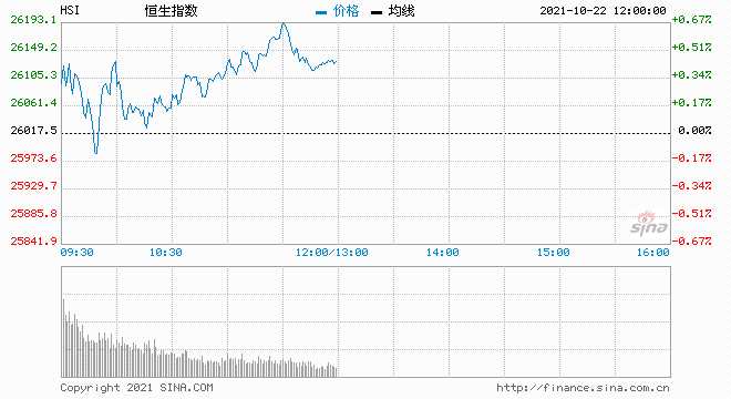 摘要: 10月22日消息,美股周四收盤(pán)漲跌不一。標(biāo)普500指數(shù)錄得連續(xù)第7個(gè)交易日上漲,并創(chuàng)盤(pán)中與收盤(pán)歷史高位。今日港股高開(kāi)高走,截至午盤(pán),恒生指數(shù)漲0.44%,報(bào)26132.90點(diǎn),國(guó)企指數(shù)漲1.07%,
