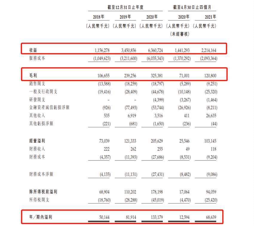 優(yōu)矩互動(dòng)2018年、2019年、2020年毛利分別為1.06億元、2.39億元、3.25億元;2021年1-4月為1.21億元,2020年同期為7100萬(wàn)元。