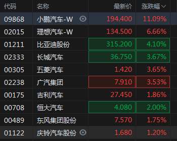 快訊:汽車(chē)股漲幅擴(kuò)大 小鵬汽車(chē)漲超11%理想汽車(chē)漲近7%