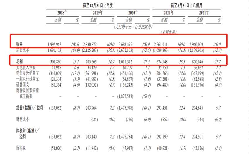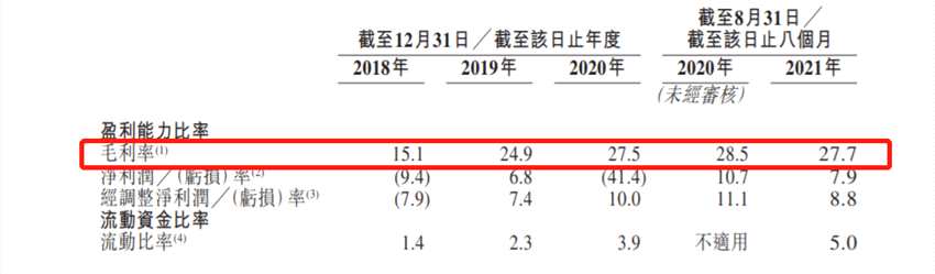 招股書顯示,截至2018年、2019年、2020年12月31日止及截至2020年、2021年8月31日止8個(gè)月,花房集團(tuán)的收入分別為19.93億元(單位:人民幣,下同)、28.31億元、36.83億元及23.64億元、29.6億元。毛利分別為3.02億元、7.06億元、10.11億元及6.74億元、8.2億元。同期毛利率分別為15.1%、24.9%、27.5%、28.5%及27.7%。