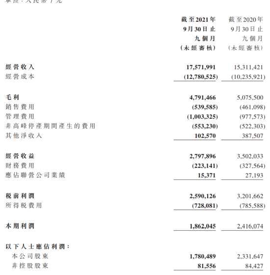 山水水泥在港交所公告,前三季度股東應(yīng)占利潤17.8億元,去年同期為23.3億元。同比下滑23.6%;營收175.7億元,去年同期為153.1億元。