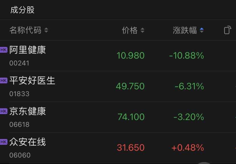 今日互聯(lián)網(wǎng)醫(yī)療概念大幅回調(diào),跌9.65%。其中阿里健康、平安好醫(yī)生領(lǐng)跌,其分別為10.88%和6.31%。