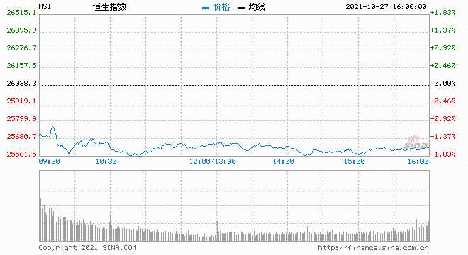 摘要: 10月27日消息,美股周二小幅收高。投資者聚焦美國大型科技股的財報與美國經(jīng)濟數(shù)據(jù)。今日開盤,恒生指數(shù)低開0.93%,隨后跌幅擴大。截至收盤,恒生指數(shù)跌1.57%,