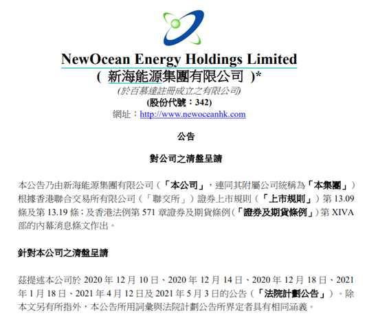 新海能源午后暴跌46% 日前接獲法院提出針對公司的清盤呈請