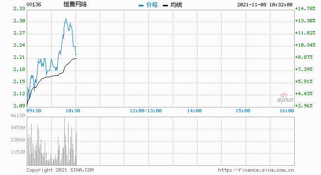 11月8日消息,恒騰網(wǎng)絡(luò)漲7.39%,報(bào)2.18港元,最新市值201.32億港元。