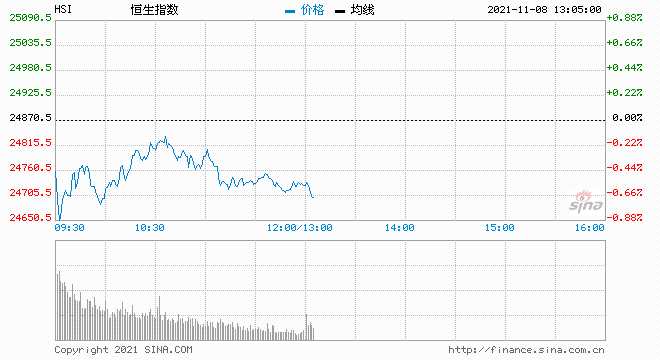 摘要: 11月8日消息,美股上周繼續(xù)維持強勢,全周計,道指上升1.4%,納指及標(biāo)普則累升3.1%及2%。今日港股低開低走,截至午盤,港股恒指跌0.57%,報24728.63點,國企指數(shù)跌0.52%,