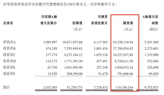 公司本次引入6名投資者,涉資1.5億美元,其中,投資者A股中金公司附屬公司,投資者B為私募股權(quán)基金HHF Capital,投資者C為于一間英屬處女群島成立的合伙企業(yè),致力于投資醫(yī)療保健產(chǎn)業(yè)領(lǐng)域。其普通合伙人為 BVF (BVI) Holding Limited,該公司由Wenbo Xu全資擁有。