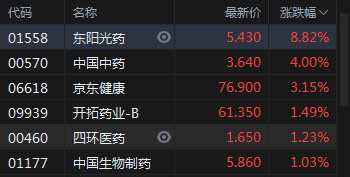 快訊:醫(yī)藥股走強 東陽光藥漲近9%中國中藥漲4%