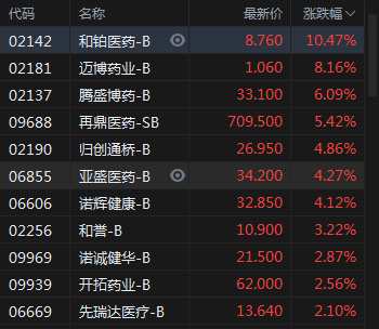 生物醫(yī)藥B類股集體上漲 和鉑醫(yī)藥漲超10%邁博藥業(yè)漲超8%