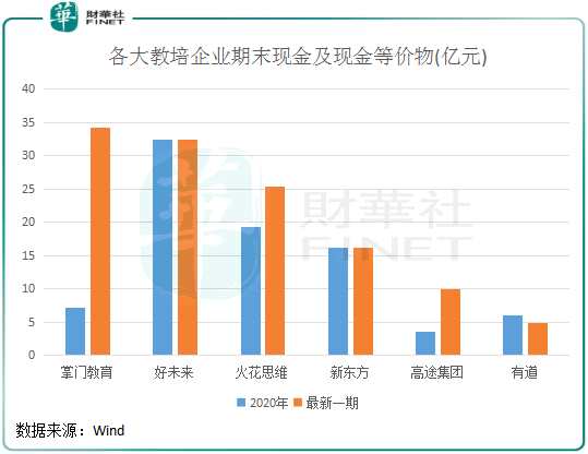 另一方面,手頭現(xiàn)金流成為教培企業(yè)生存和轉(zhuǎn)型的重要支撐。從最新一期數(shù)據(jù)看,各大企業(yè)現(xiàn)金流并不差。