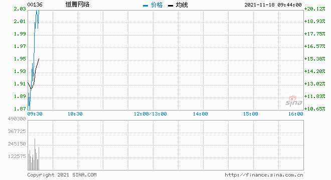11月18日消息,恒騰網(wǎng)絡(luò)漲14.2%,報(bào)1.93港元。此前,中國恒大出售持有的恒騰網(wǎng)絡(luò)全部股份,總代價(jià)21.28億港元。