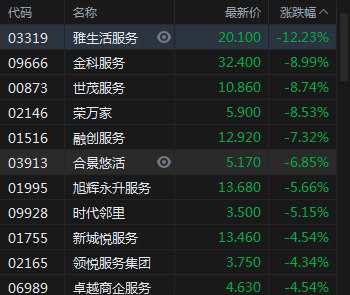 內地物業(yè)管理股跌幅擴大 雅生活服務跌超12%融創(chuàng)服務跌超7%