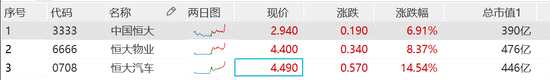 恒大系集體走高:中國(guó)恒大漲7% 恒大汽車(chē)漲近15%