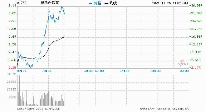 11月25日消息,教育股集體大漲,思考樂教育漲超34%,希望教育漲超18%,中國東方教育漲超12%,天立教育漲超9%,楓葉教育、中國新華教育漲超8%,新東方漲超5%。
