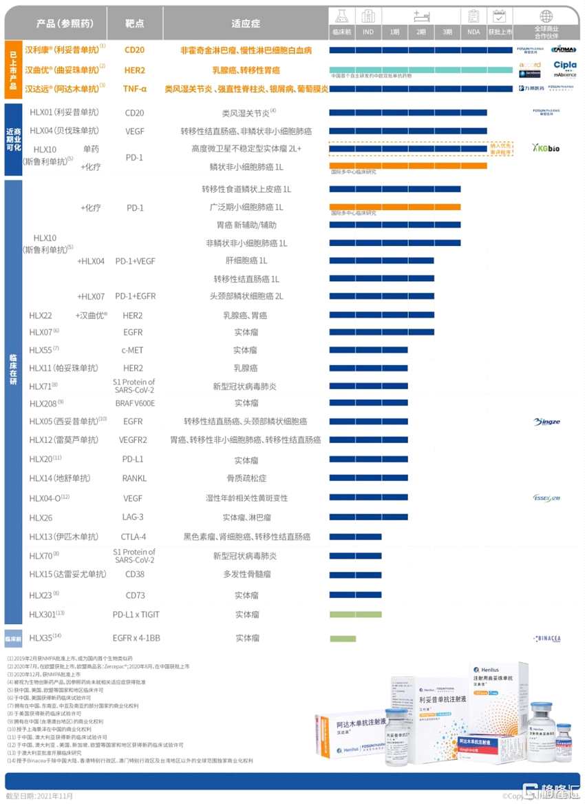 圖表一:復(fù)宏漢霖產(chǎn)品管線(截至2021年11月)