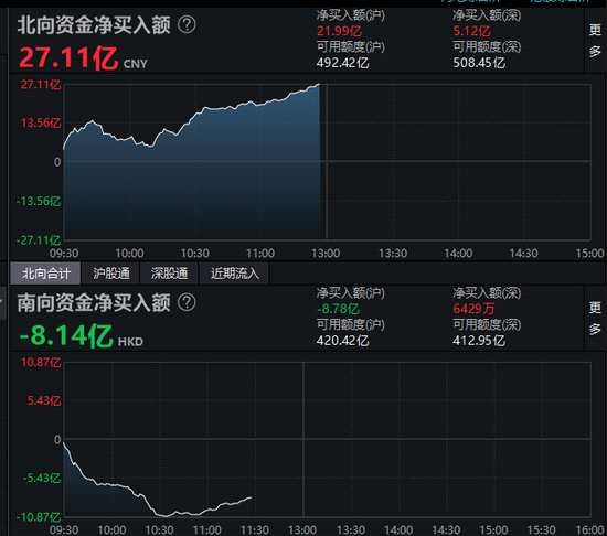 午評:北向資金凈買入27.11億元 滬股通凈買入21.99億元