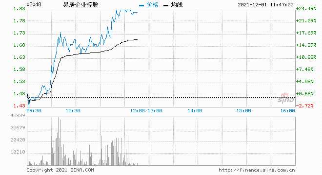 12月1日消息,易居企業(yè)控股漲23.81%,現(xiàn)報1.82港元,最新市值31.83億港元。