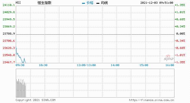 摘要: 12月3日消息,美股周四收高,挽回了周三的跌幅,周期性板塊引領(lǐng)市場反彈。市場仍在關(guān)注變異毒株的潛在風險與美聯(lián)儲加速減碼的前景。今日港股開盤,恒生指數(shù)低開0.48%,