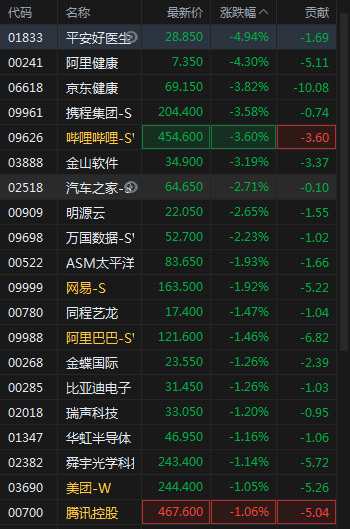 12月10日消息,恒生科技指數(shù)午后跌幅擴大至1%,互聯(lián)網(wǎng)醫(yī)療概念跌幅居前,平安好醫(yī)生跌近5%,阿里健康跌超4%,京東健康跌3.82%。此外,嗶哩嗶哩跌3.6%,網(wǎng)易跌1.92%,美團跌1.05%。