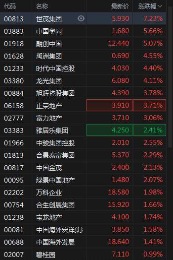 快訊:內(nèi)房股集體上漲 世茂集團(tuán)漲超7%中國奧園漲近6%
