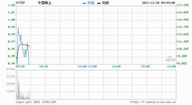 摘要: 12月20日消息,中國(guó)稀土漲9.20%,報(bào)0.95港元,最新市值22.25億港元。公司昨晚公告,與北方稀土(600111)(600111.SH)訂立戰(zhàn)略合作框架協(xié)議。