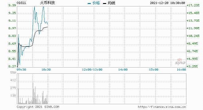 12月20日消息,火幣科技漲12.98%,現(xiàn)報(bào)9.05港元,最新市值27.87億港元。