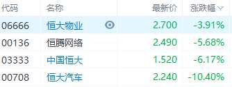 快訊:“恒大系”跌幅擴(kuò)大 恒大汽車跌超10%