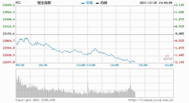 摘要: 12月20日消息,港股持續(xù)走低,恒指跌幅擴大至2%,恒生科技指數(shù)跌近3%。原材料、醫(yī)藥、光伏跌幅居前。瓜分6666元現(xiàn)金紅包!領取8%+理財券,每日限額3000份!