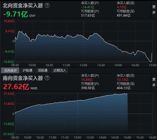 12月20日消息,北向資金午后加速離場(chǎng),全天實(shí)際凈賣(mài)出9.71億元;其中滬股通凈賣(mài)出14.41億元,深股通凈買(mǎi)入4.7億元。
