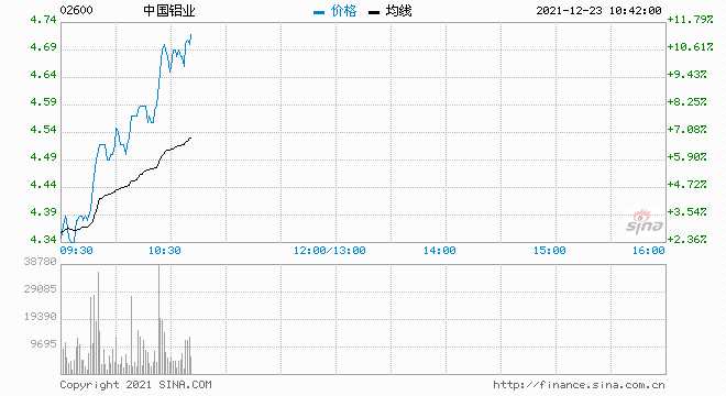12月23日消息,中國鋁業(yè)AH股齊升,A股漲超7%,H股漲超10%。