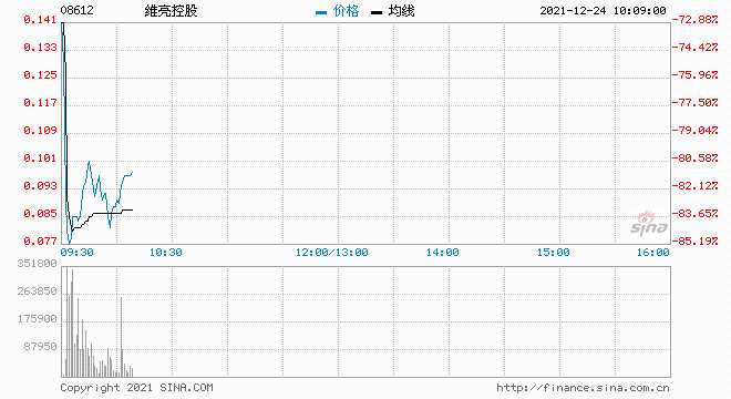 12月24日消息,維亮控股今日復(fù)牌,股價(jià)暴跌82.12%領(lǐng)跌港股,現(xiàn)報(bào)0.093港元,最新市值0.76億港元。